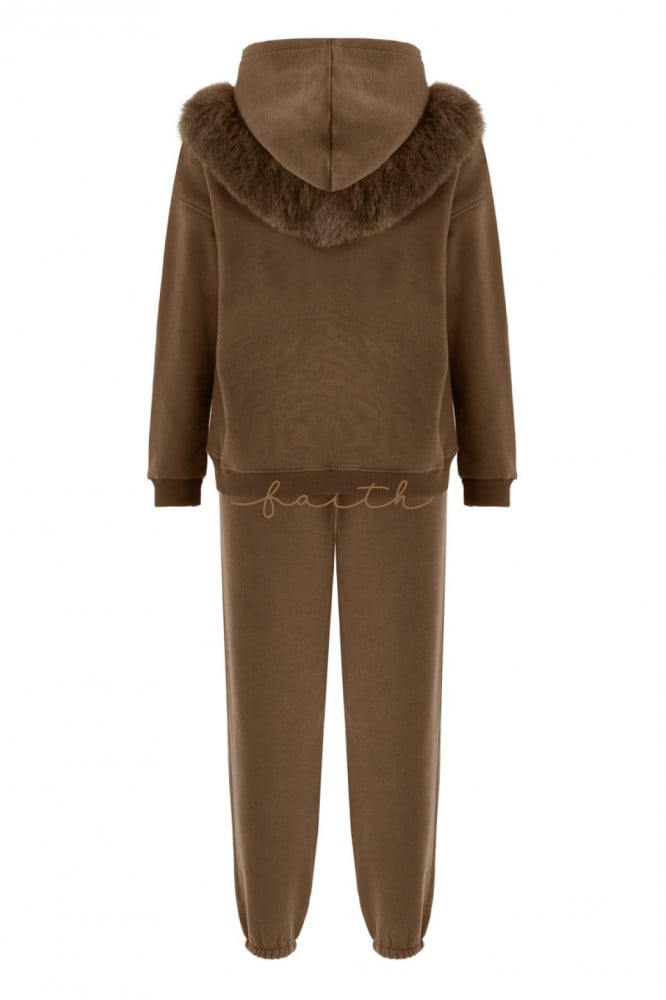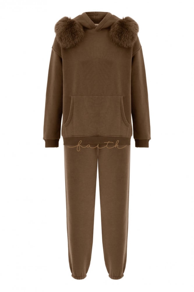 BROWN HOODY SWEATSHIRT FLEECE SET FOX ON SHOULDERS