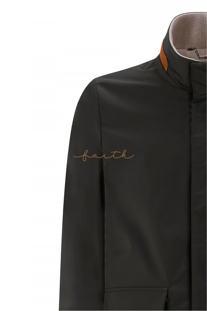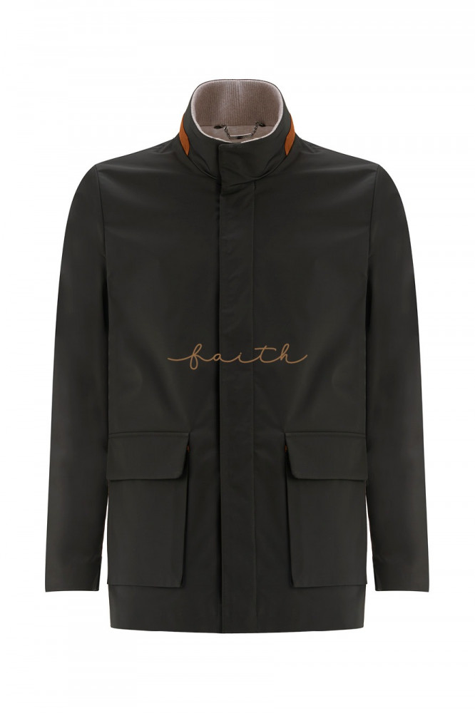 KHAKI WATERPROOF JACKET, SUED COLLAR NO FUR