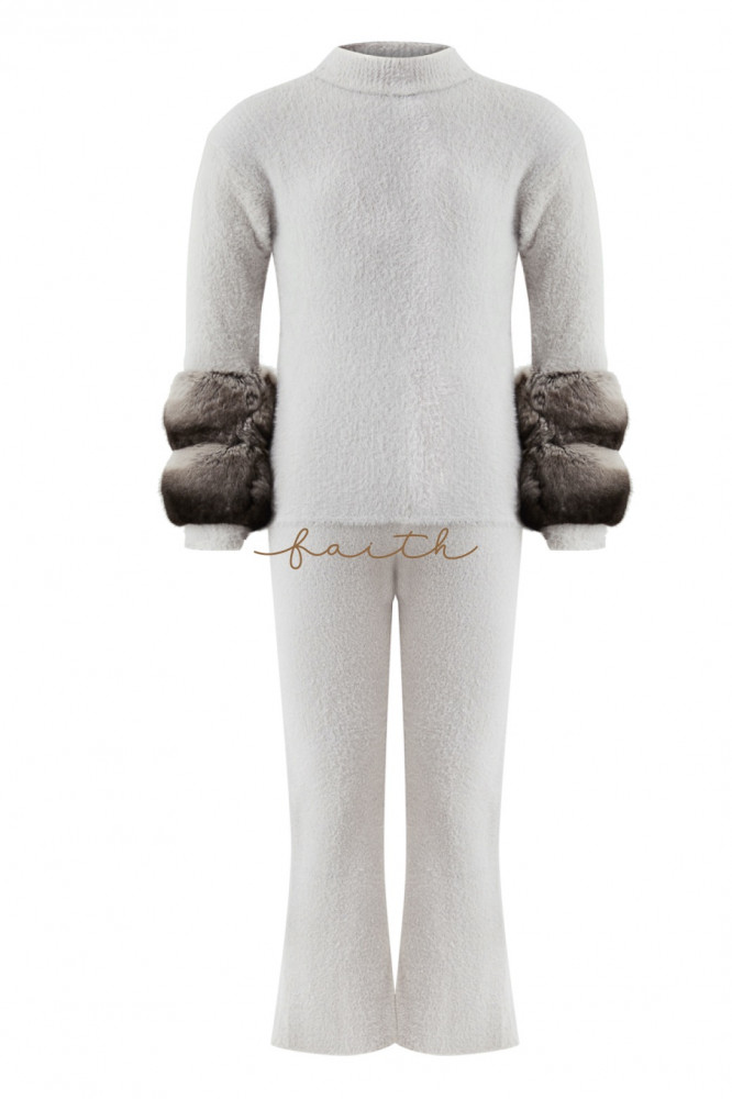 KIDS CHINCHILLA FUR ON SLEEVES GREY FLUFFY SET
