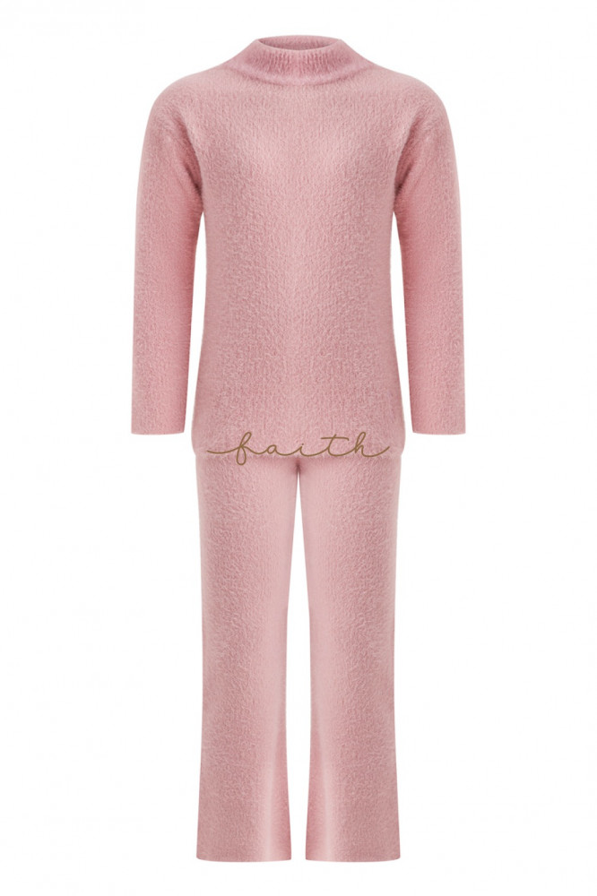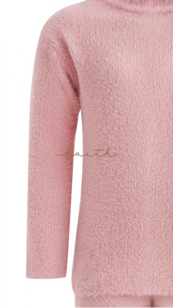 A COMFY HIGH-NECK FLUFFY FABRIC SET WITH WIDE BOTTOM