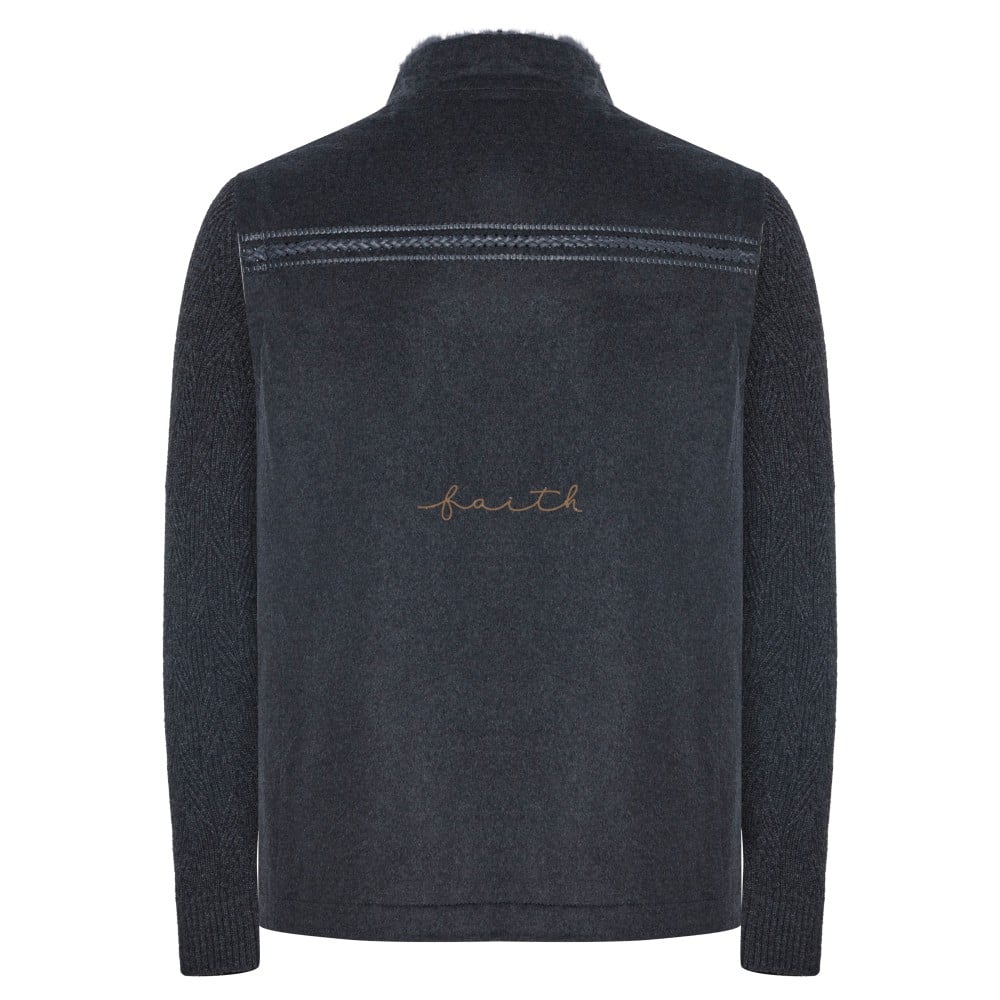CASHMERE JACKET WITH WOOL SLEEVE AND EMBRIODERY ON IT.