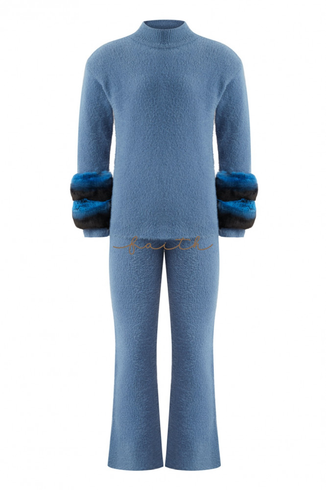 KIDS CHINCHILLA ON SLEEVES BLUE FLUFFY SET