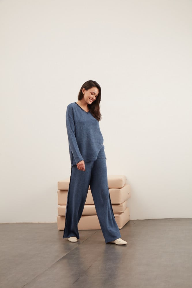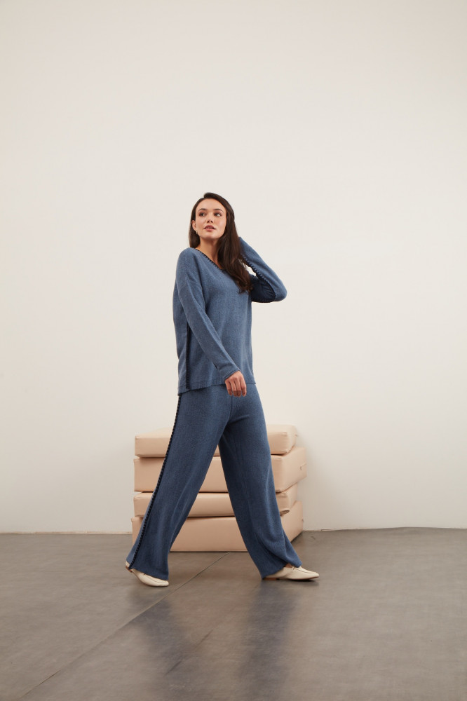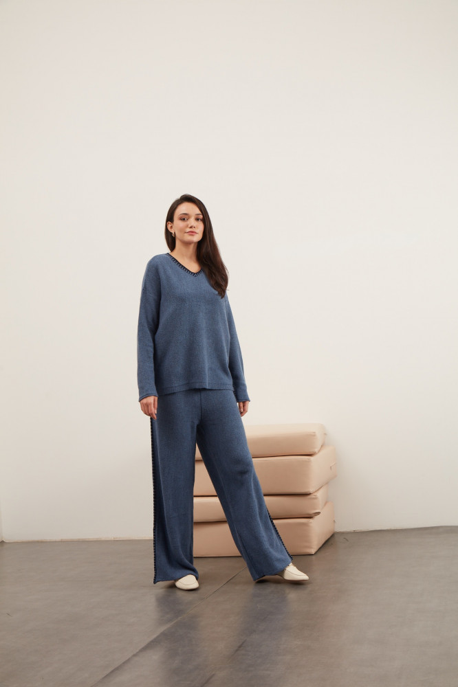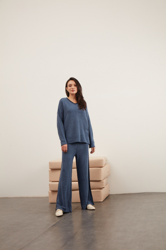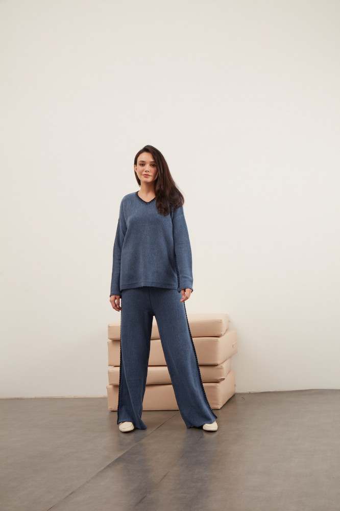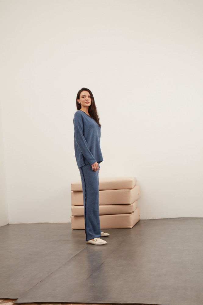 A COMFY SET WITH LOOSE AND COZY FEEL WHEN WORN WITH EMBRIODERY ON THE SIDES.