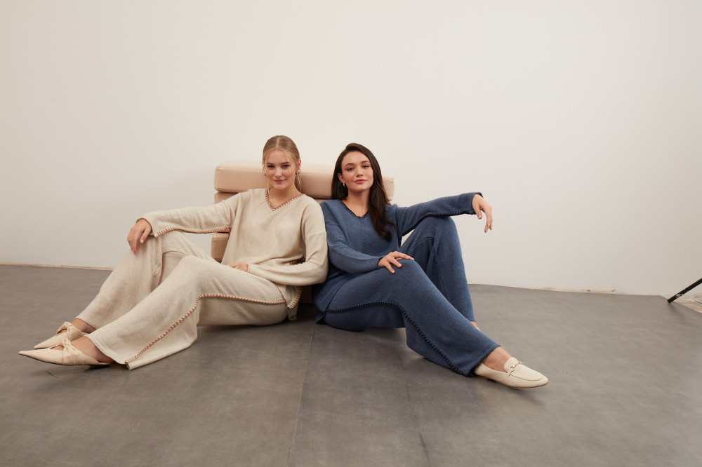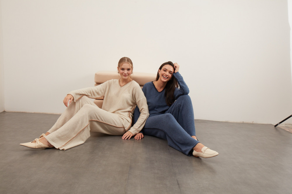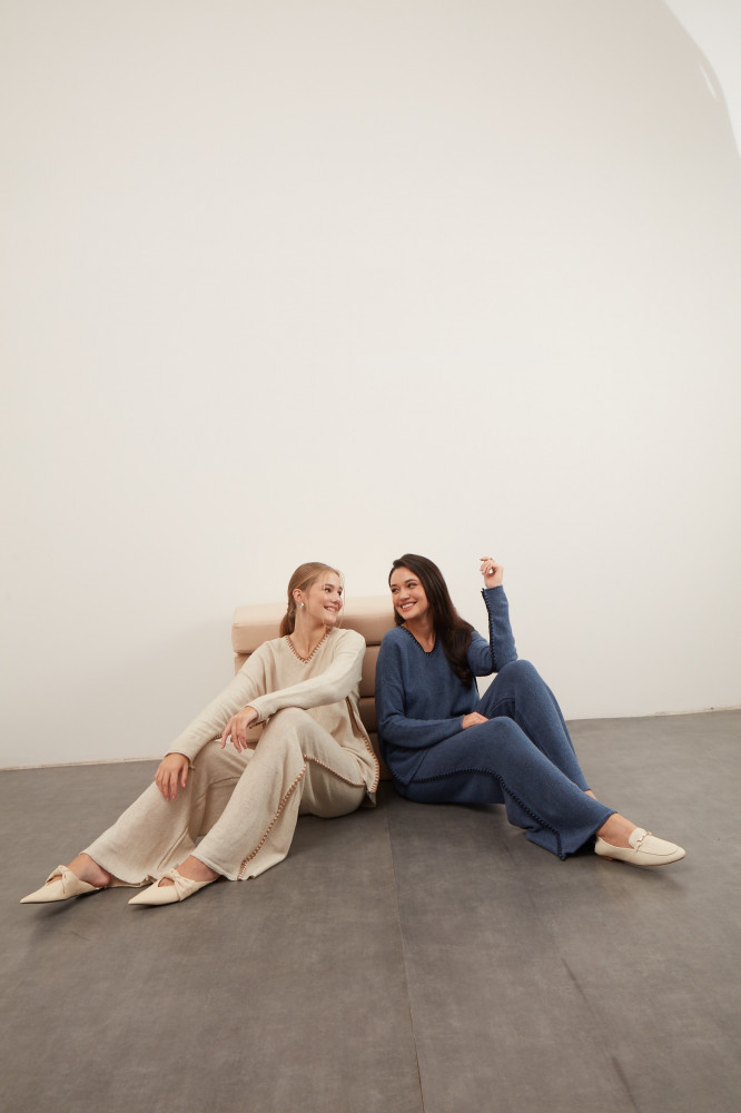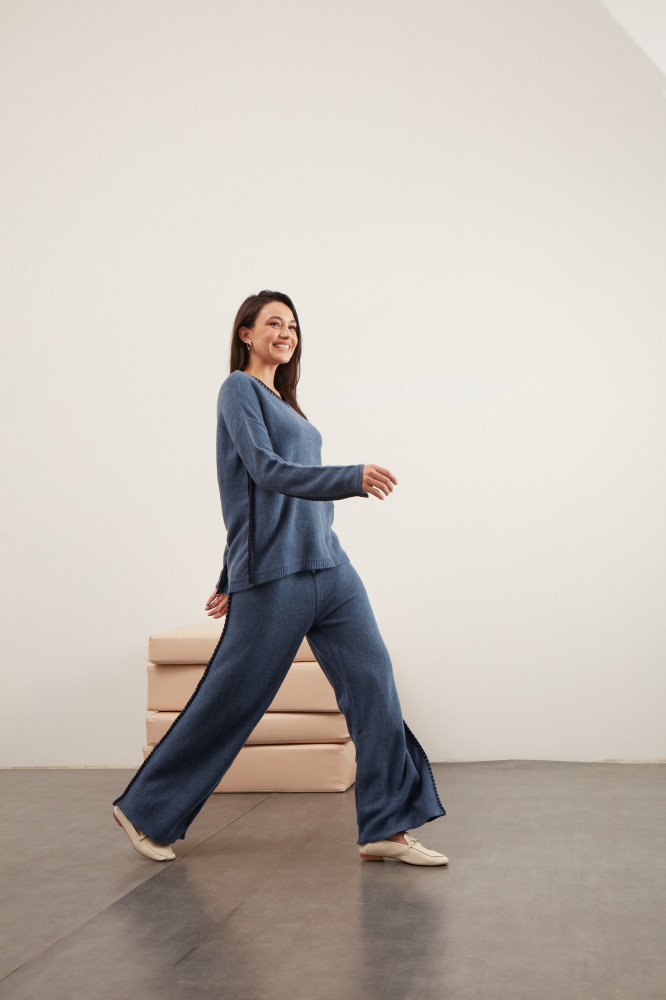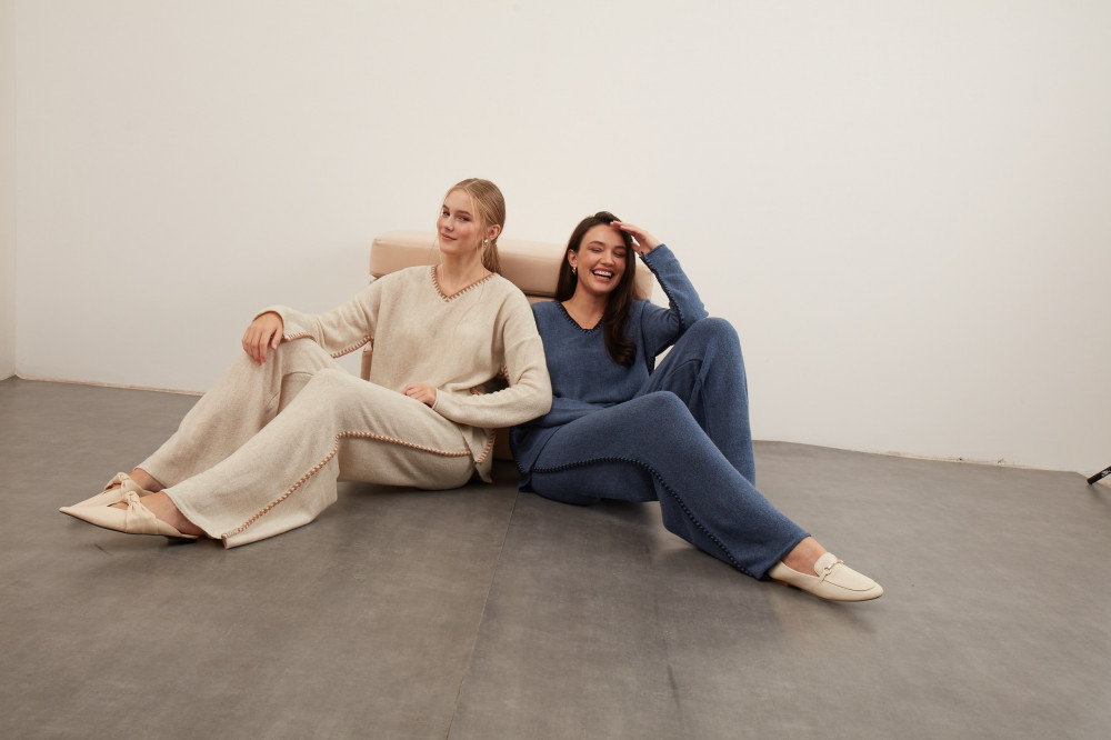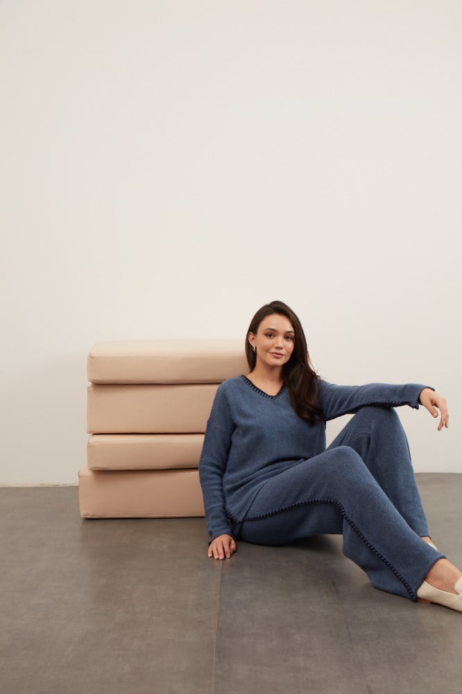 A COMFY SET WITH LOOSE AND COZY FEEL WHEN WORN WITH EMBRIODERY ON THE SIDES.