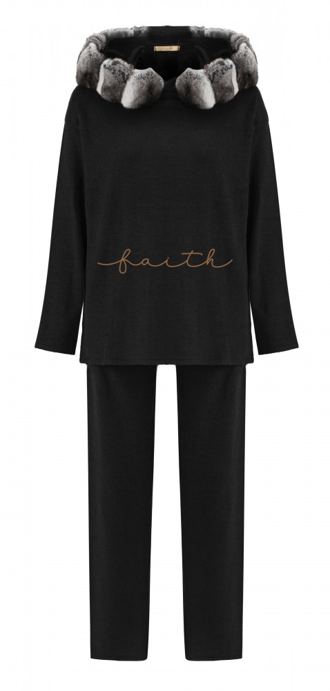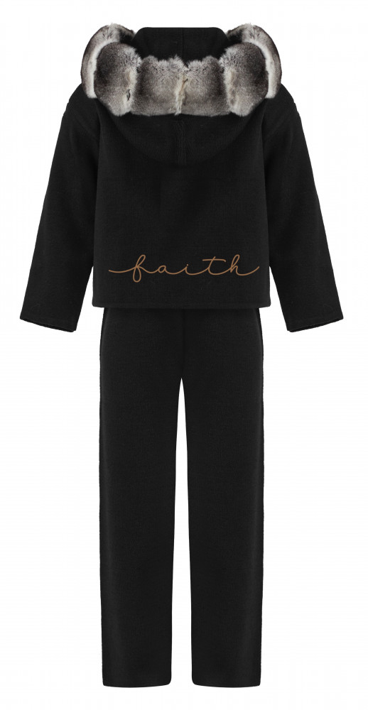 KNITTED SET WITH CHICHILA AROUND HOODIE
