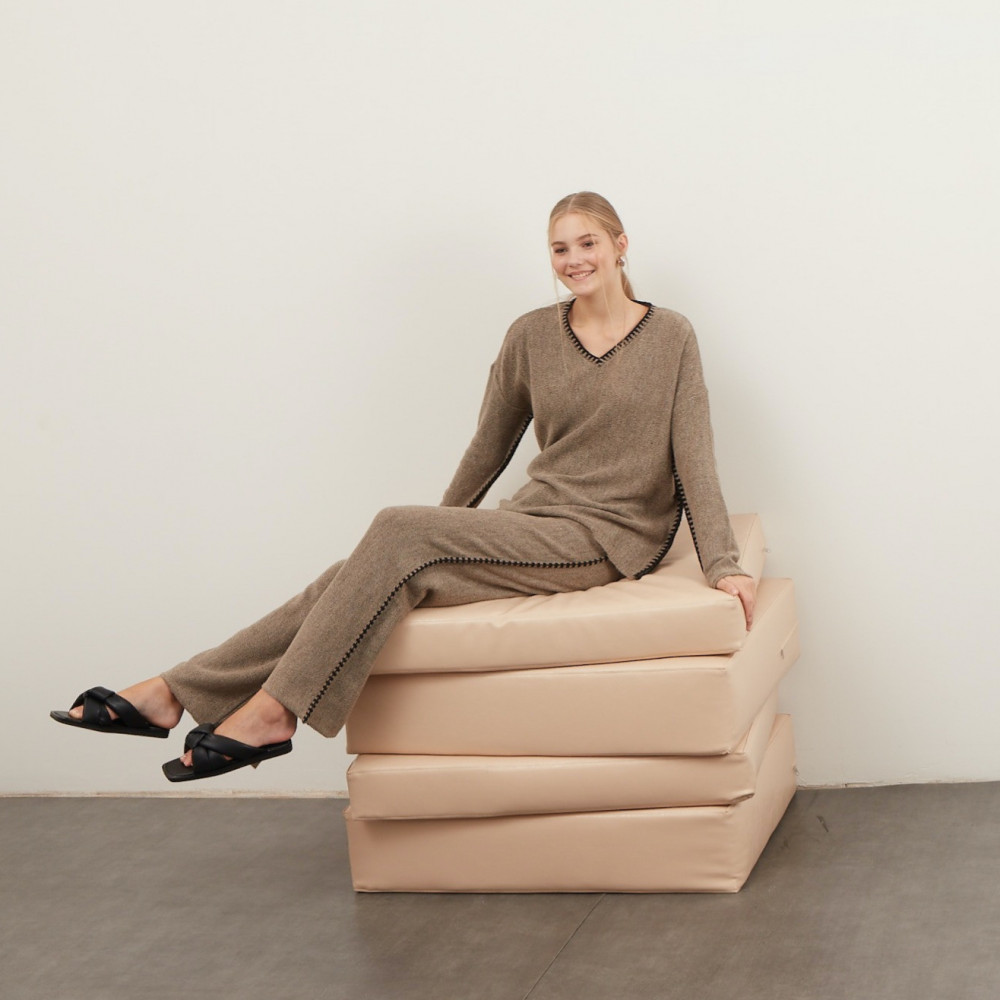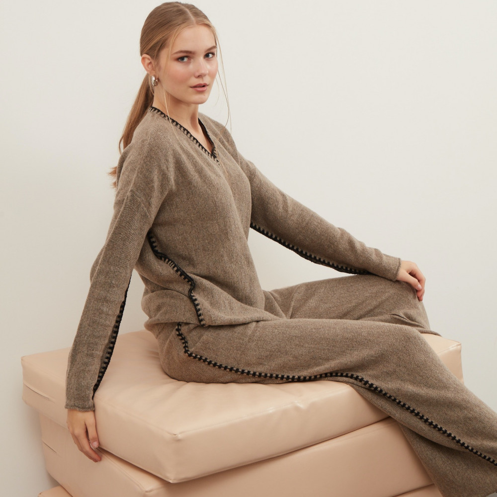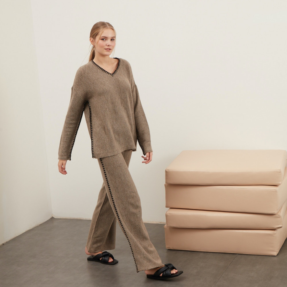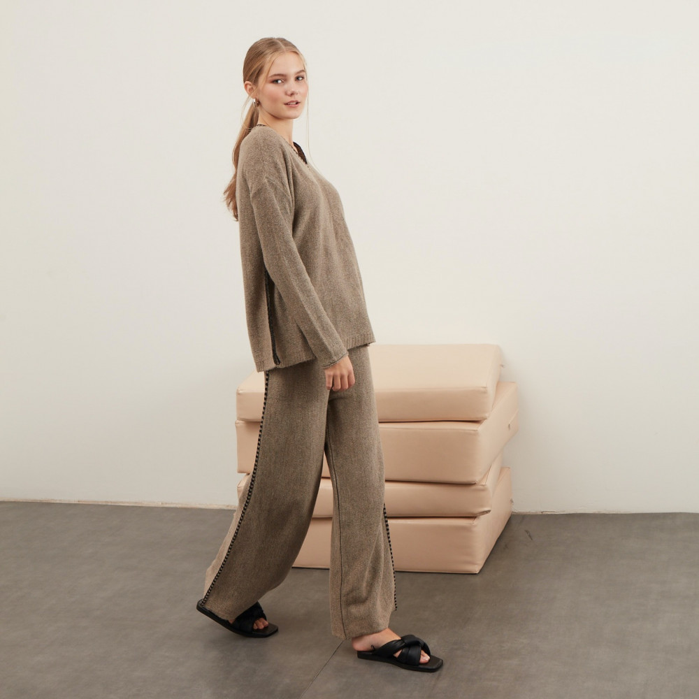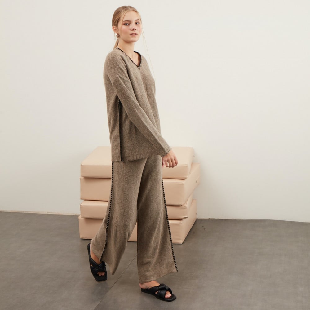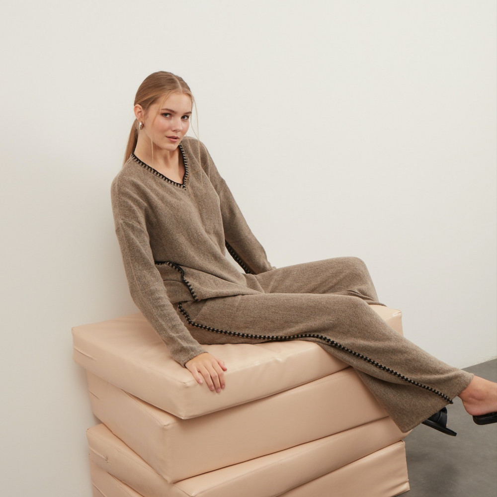 A COMFY SET WITH LOOSE AND COZY FEEL WHEN WORN WITH EMBRIODERY ON THE SIDES.